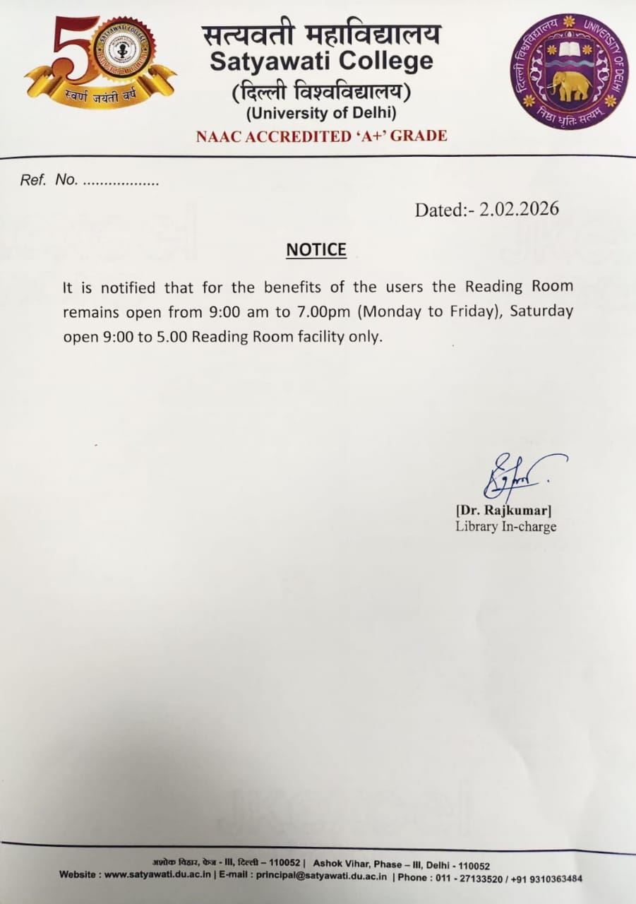 Reading Room.................................9.30 AM to 5.30 PM (Monday to Saturday)
