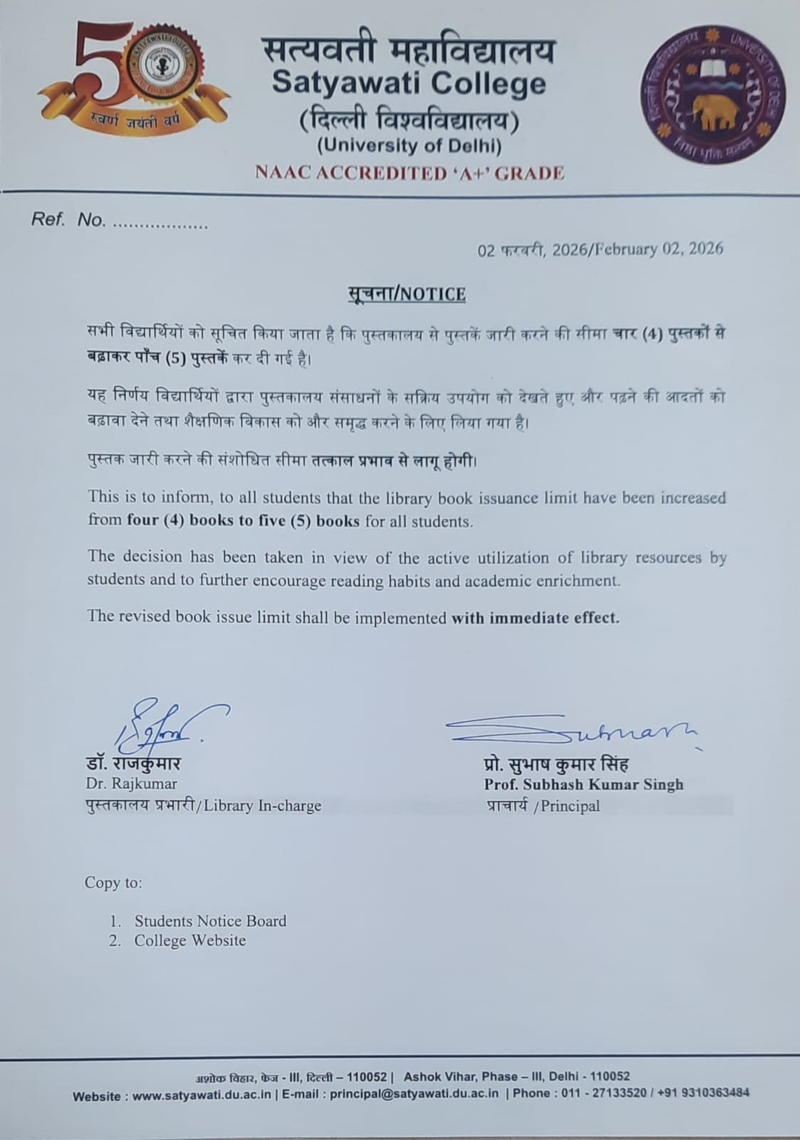 ( Library will remain closed on all Sundays and Gazetted Holidays )